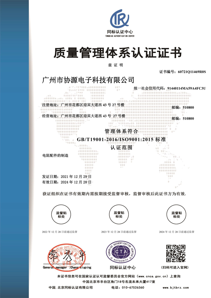 • 质量管理体系认证证书